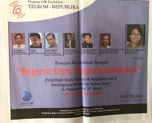 Sekitar tahun 2006-2009, saya dan beberapa teman dilibatkan untuk memberikan pelatihan kepada Guru SD, SMP dan SMA di Jabodetabek dan beberapa kota lain di pulau Jawa. Berikut salah satu iklan tentang acara tersebut.