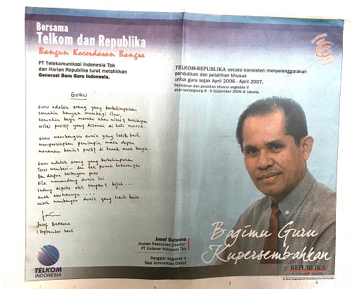 Aktivitas ini dirancang oleh Telkom bersama Republika, sebagai bagian CSR program mereka. Dan semua yang mengajar diminta untuk menuliskan sesuatu tentang Guru, dan foto mereka dipajang di koran Republik.
