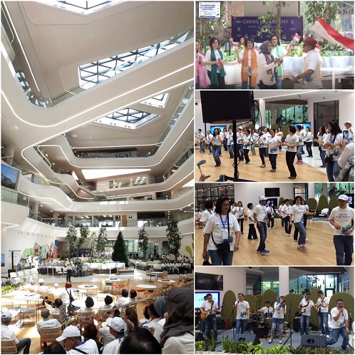 Acara diawali dengan pilihan FunWalk seputar kantor atau office tour selama sejam. Gempita Lagu Indonesia Raya membuat aliran darah semakin menggelora. Dan saat musik gembira mengiringi Tarian Maumere, semua mulai melemaskan ototnya, seakan ingin bergoyang lebih lama lagi.