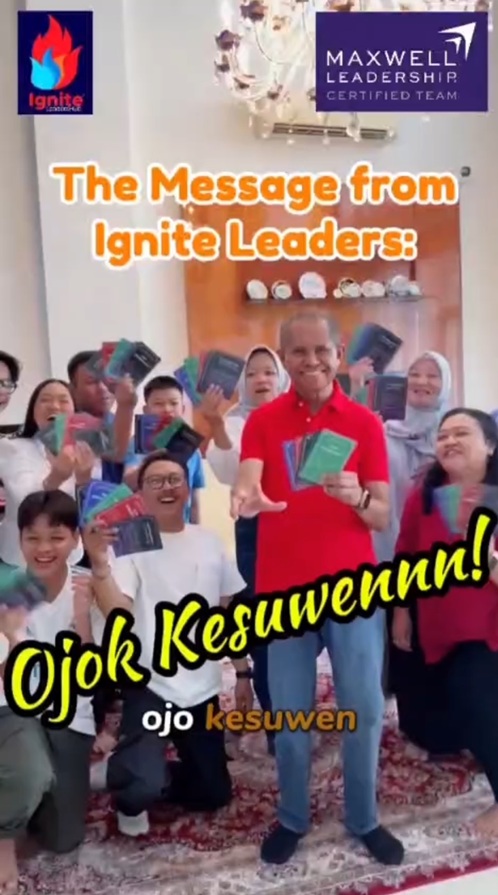 Team kecil di Maxwell Leadership Indonesia, Ignite Leaders Hub, sedang meminta masing2 kami untuk membuat rekaman yang menggugah teman2 sosmed kita yang sudah mempunyai keputusan untuk berbuat baik, agar segera melaksanakannya, jangan berlama-lama, jangan ditunda lagi. Group inipun saya ajak untuk mendiskusikan bagaimana membuat video pendek bersama, yang segera kami tampilkan di sosmed. Berikut antusias mereka sambil memegang kartu DREAM, sekaligus merupakan deklarasi tekad, bahwa apa yang sudah didiskusikan berkaitan dengan langkah yang akan diambil, akan segera diambil. Momen yang bagus untuk meneguhkan tekad ini. Cover video dari Ignite Leaders Hub, Maxwell Leadership Indonesia.