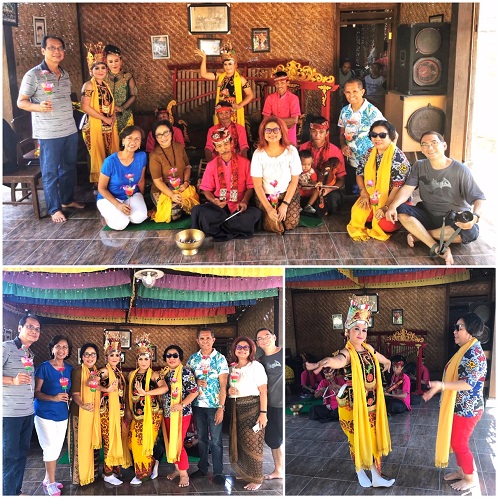 Kalau bukan kita yang mengapresiasi dan turut mengangkat dan memperkenalkan kesenian daerah, siapa lagi? Kamipun tidak melewatkan kesempatan untuk menyaksikan Kesenian dan menikmati makanan khas masyarakat Osing Kemiren. Ada improvisasi diluar agenda asli, acara makan kami mulai dengan appetizer berupa durian pesanan yang baru tiba siang itu. Tentu saja ini juga bukan kebiasaan dan cara makan masyarakat Osing Kemiren, tapi karena banyak durian lovers di tim kami. Foto makan durennya saya sensor.