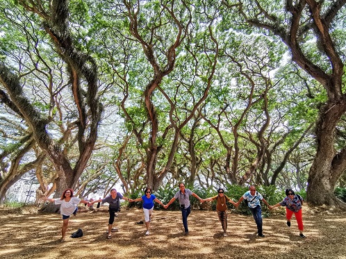 Foto bersamapun dirancang untuk mengimbangi gaya hadirnya pohon-pohon trembesi tersebut. Siapa lagi penata gayanya kalau bukan bu Ripy (paling ujung kiri).