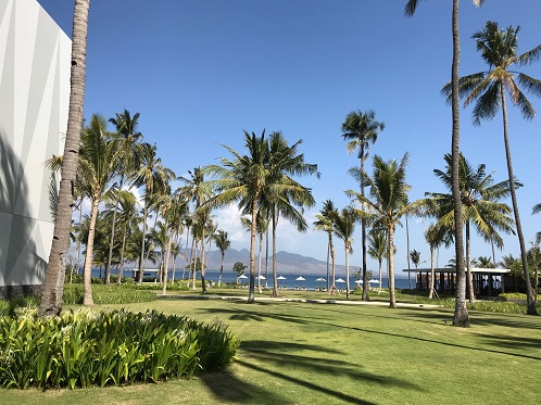 Suasana asri di hotel kedua tempat kami menginap, halaman belakang yang luas, laut dan langit yang biru bersih dan pulau Bali di latar belakang, memberikan penekanan khusus tentang kekhasan alam Indonesia dengan nyiur di pantai yang senantiasa melambai-lambai ditiup angin.