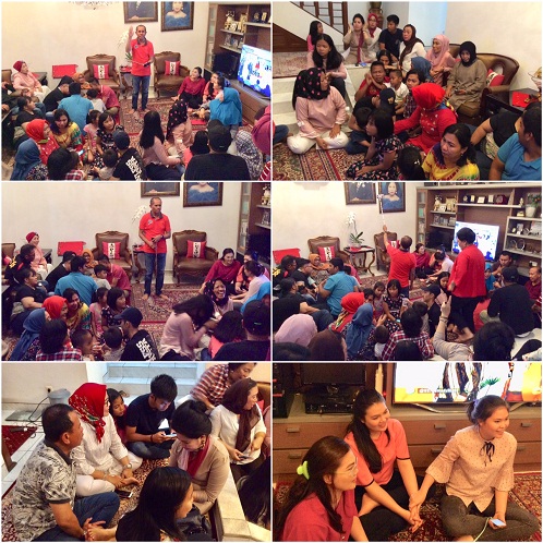 Jam menunjukkan angka 22:00. Kami berkumpul di ruang keluarga, santai di atas karpet. Ada permainan sederhana sambil menanti pertukaran waktu. Semua yang hadir dibagi dalam enam kelompok keluarga.