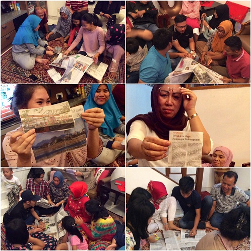 Masing-masing kelompok kemudian menerima dua lembar koran. Mereka harus mencari gambar atau kata-kata/kalimat atau tulisan yang bisa menggambarkan Indonesia yang diidamkan di masa mendatang.